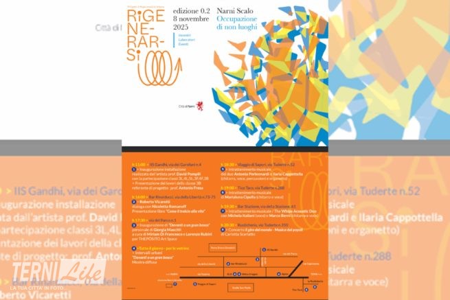 Sarà anche quest’anno all’insegna della riqualificazione urbana ma anche economica, sociale e creativa l’edizione 2025 di “Rigenerarsi”, il festival culturale promosso dal Comune di Narni che inizierà a Narni scalo sabato prossimo, 8 novembre. Via Tuderte ospiterà per tutta la giornata esposizioni artistiche, incontri e interventi per stimolare una riflessione culturale sulla riqualificazione. “Obiettivo della manifestazione è, ancora una volta, portare la cultura in un abitato altrimenti sprovvisto di teatri e piazze, occupando creativamente i luoghi della vita quotidiana”, dice in una nota il Comune. Qui il comunicato integrale. “Tema scelto per l’edizione di quest’anno è l’inclusione.