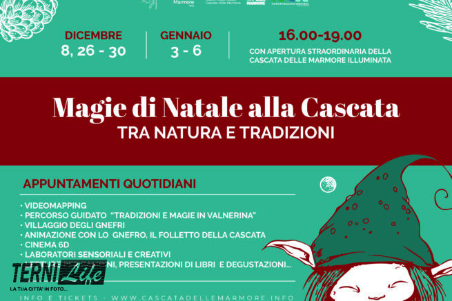La Cascata delle Marmore si prepara a vivere il periodo natalizio con “Magie di Natale alla Cascata – tra natura e tradizioni”, un calendario di aperture straordinarie e iniziative speciali in programma l’8, 26, 27, 28, 29, 30 dicembre 2025 e il 3, 4, 5, 6 gennaio 2026.