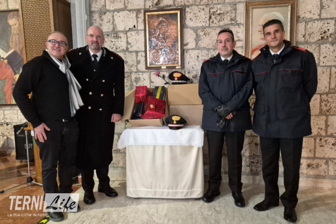 Nel pomeriggio di ieri, presso la chiesa di San Paolo Apostolo di Terni, il Comandante Provinciale dell’Arma, Colonnello Antonio De Rosa, insieme al Comandante della Stazione capoluogo, Lgt. C.S. Piero Pacetti ed al Comandante della Stazione di Papigno, Lgt. C.S. Paolo Gallo, hanno incontrato il Parroco Don Marco Castellani, al quale hanno consegnato, a nome dell’Arma ternana, giocattoli e dolci natalizi da devolvere ai bambini delle famiglie di parrocchiani che vivono momenti di difficoltà.