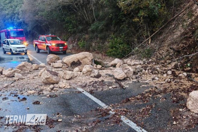 Disagi alla circolazione per tutta la zona tra Marmore e Piediluco, con rallentamenti e deviazioni. Le operazioni di bonifica proseguiranno fino al completo ripristino delle condizioni di sicurezza della strada.