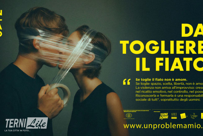 Le nuove affissioni, collocate in luoghi ad alta visibilità nei vari territori umbri, introducono elementi che ne incrinano la lettura tradizionale, aprendo a una riflessione sul confine tra coinvolgimento affettivo e limitazione della libertà. “Da togliere il fiato” assume così un significato critico e dissonante, allontanandosi dall’uso celebrativo dell’espressione per interrogare ciò che, nelle relazioni, può diventare soffocante e privante di autonomia. I manifesti non si limitano a veicolare un messaggio, ma interpellano direttamente gli uomini e la società nel suo complesso, spostando il tema dalla dimensione privata a quella della responsabilità collettiva.