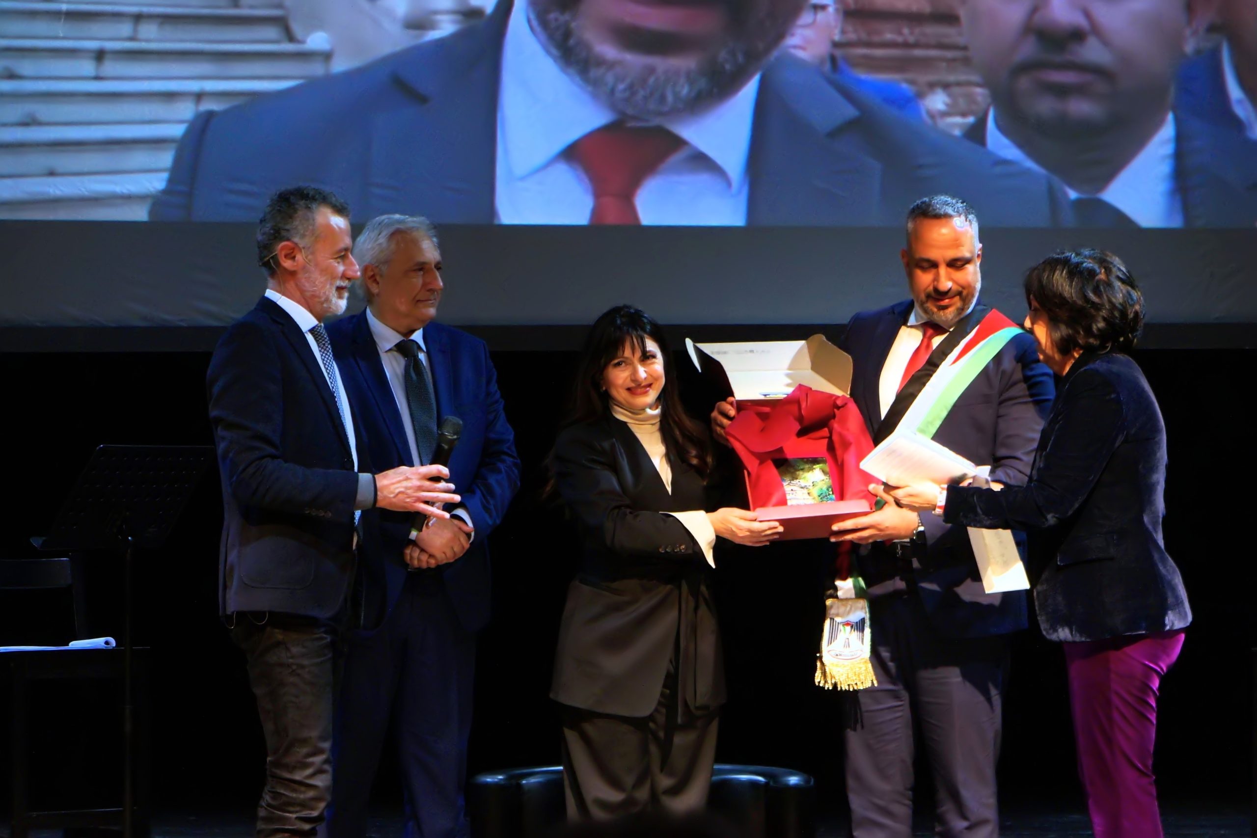 Tra i premiati spicca il Sindaco di Betlemme Maher Nicola Canawat, riconosciuto “per la custodia del messaggio di pace in una terra ferita e per l’impegno a mantenere viva la presenza cristiana e promuovere il dialogo interreligioso”. Canawat ha donato al Sindaco Bandecchi la Stella a 14 punte, simbolo di pace e unità. Il primo cittadino ternano ha ricordato al pubblico la sua posizione filo-israeliana, sottolineando i rapporti commerciali con il Paese, ma anche il suo passato da militare nella guerra del Libano (1982-1983), dove perse diversi amici difendendo il popolo palestinese.