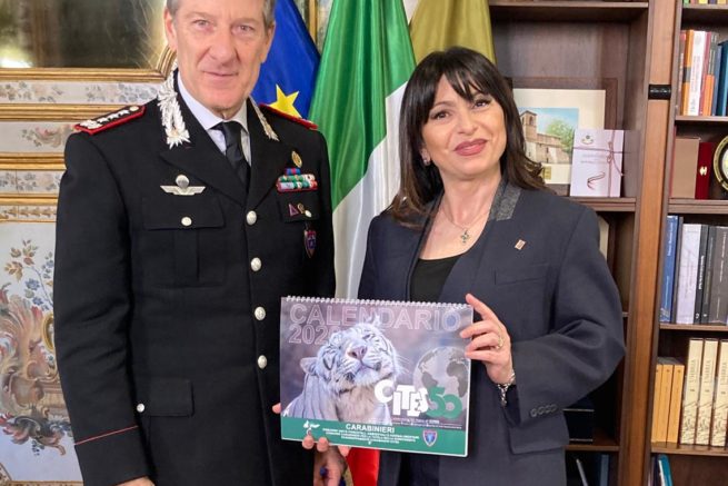 Nel corso dell’incontro si è svolto anche un momento di scambio di omaggi istituzionali. La presidente Proietti ha consegnato al generale Parrulli due volumi come simbolo di amicizia e il comandante ha fatto omaggio alla presidente del gagliardetto dei Carabinieri Forestali e del calendario Cites dedicato anche ad animali salvati da maltrattamento, richiamando il valore della tutela della biodiversità e del rispetto degli animali come parte integrante dell’impegno per la legalità ambientale.