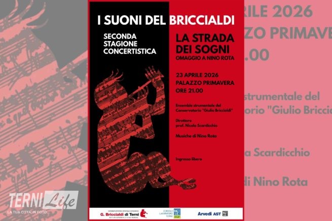 Sarà Palazzo Primavera, giovedì 23 aprile alle ore 21.00, a ospitare “La strada dei sogni – omaggio a Nino Rota”, settimo appuntamento della seconda stagione concertistica “I suoni del Briccialdi”, promossa dal Conservatorio Statale di Musica “Giulio Briccialdi” di Terni in collaborazione con il Circolo Lavoratori Terni CLT e Arvedi AST.