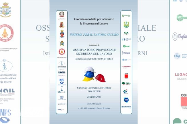 L’evento, dal titolo “Insieme per il lavoro sicuro” è in programma per martedì 28 aprile presso la sede di Terni della Camera di Commercio dell’Umbria. La manifestazione prevede un momento di incontro con gli studenti alle ore 9.30 e uno con i lavoratori e i datori di lavoro alle ore 11.00.